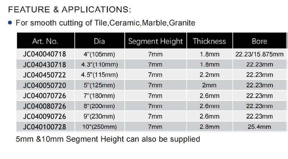 - Customizable Segment Height: Optional 5mm and 10mm segment heights available upon request for specialized cutting requirements.