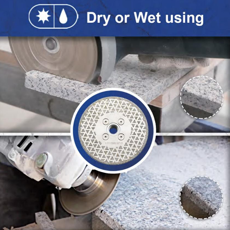 - Versatility in Cutting Conditions: Supports both dry and wet cutting applications (indicated by icons and usage descriptions), adapting to diverse job requirements.