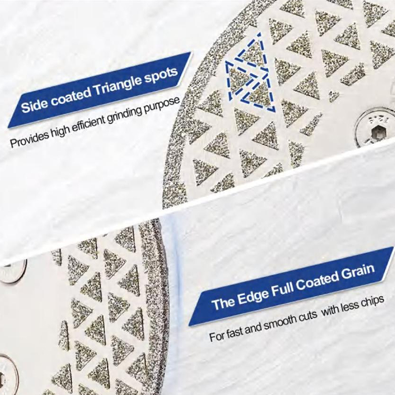 - Side Coated Triangle Spots: Arranged in a patterned layout (outlined by dashed blue triangles in close-ups), designed for efficient grinding.