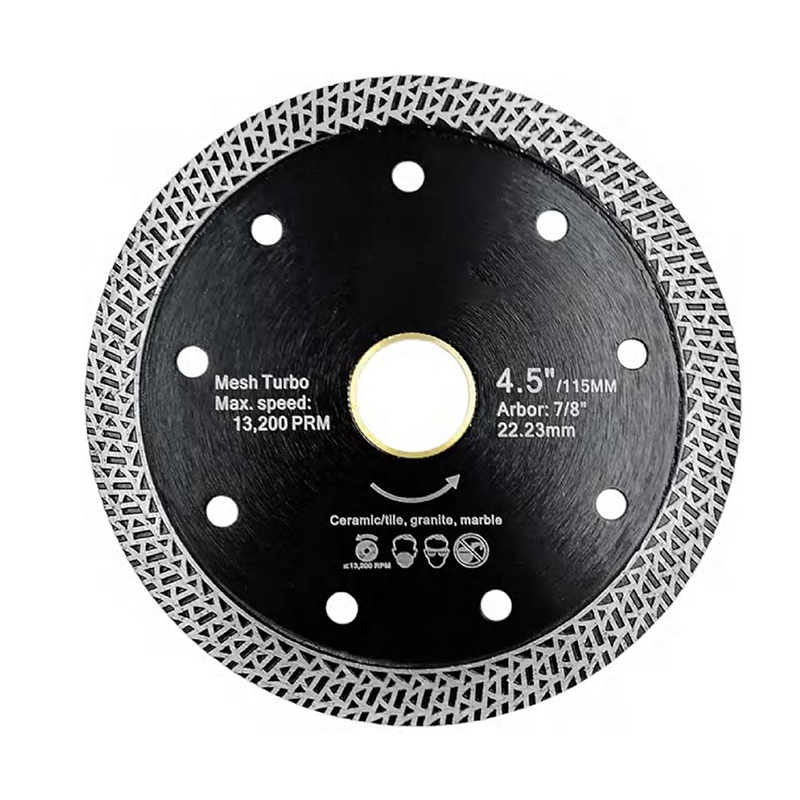 - K Mesh Turbo Rim Segment Design: Features a distinctive crisscrossing pattern of silver-colored metal bonds (K mesh structure) with serrated, textured edges. The mesh design facilitates cooling during cutting, effectively expels dust, and enhances efficiency, speed, and stability.