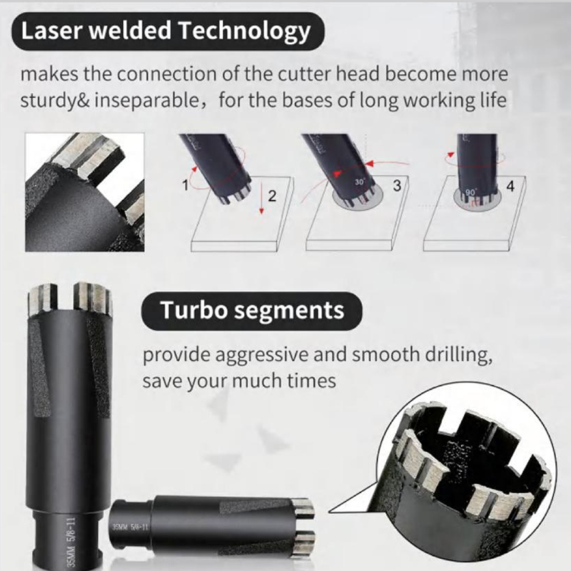 - Laser Welding Technology: Ensures a strong bond between diamond segments and the drill bit body, significantly enhancing durability and resistance to wear during high-intensity drilling.